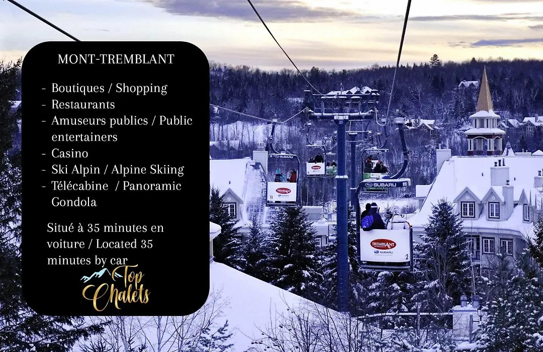 Chic Familiale, Relaxant Avec Spa En Montagnes features mountain views as well as a location relatively close to Mont-Tremblant. The 3-bedroom chalet offers guests a relaxing experience with a Jacuzzi.